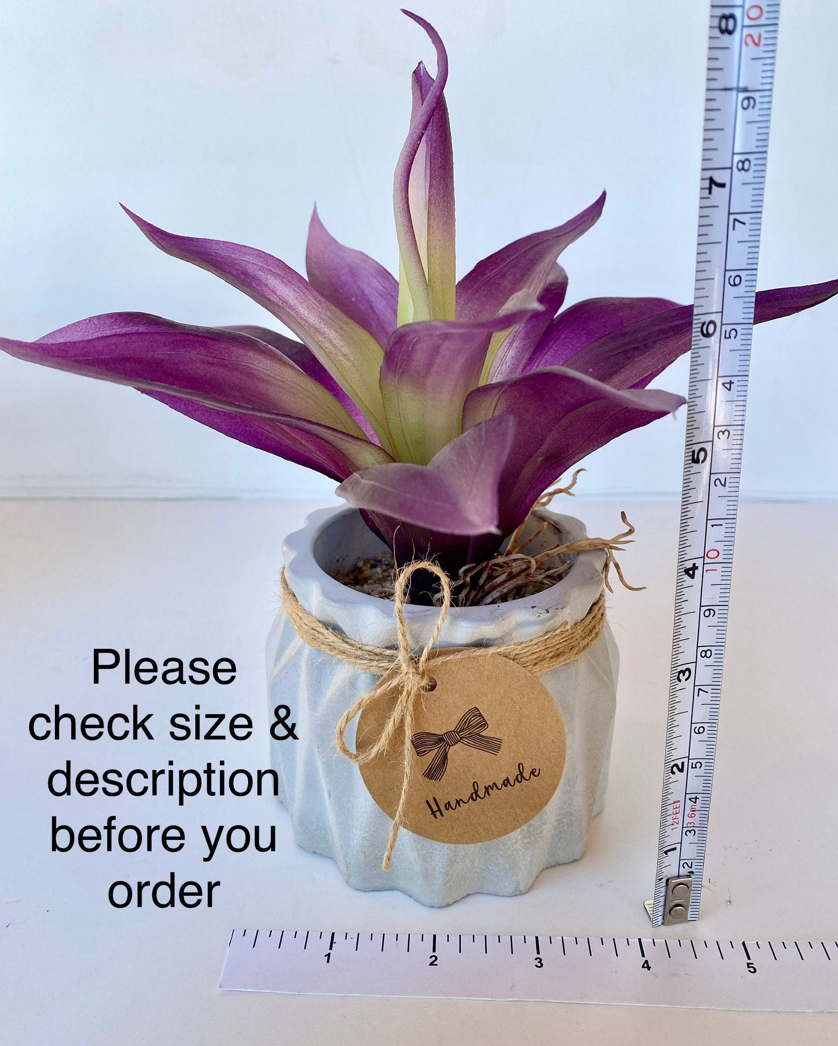 Very realistic looking artificial agave succulent plant in handmade concrete Pot - Purple Color!