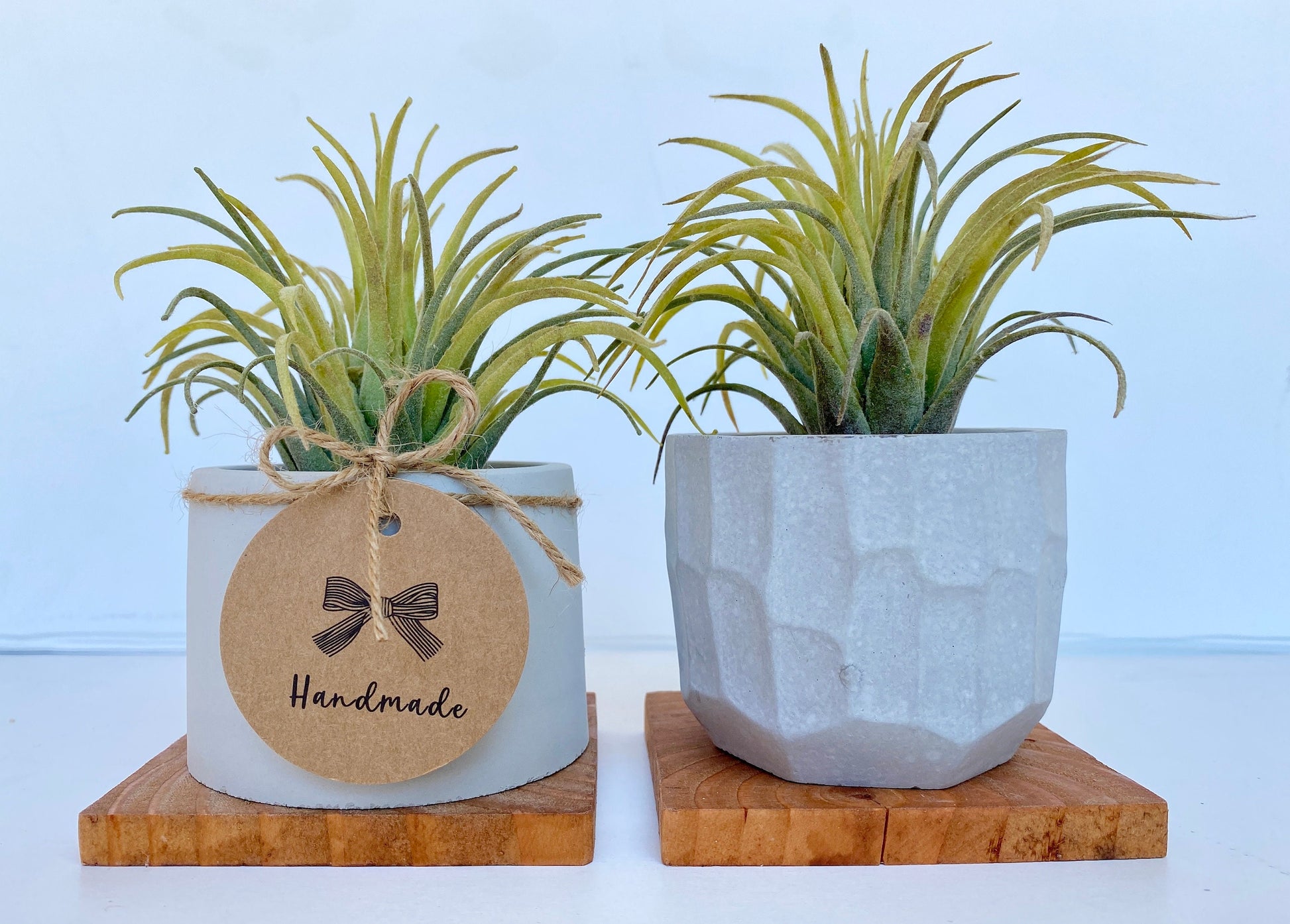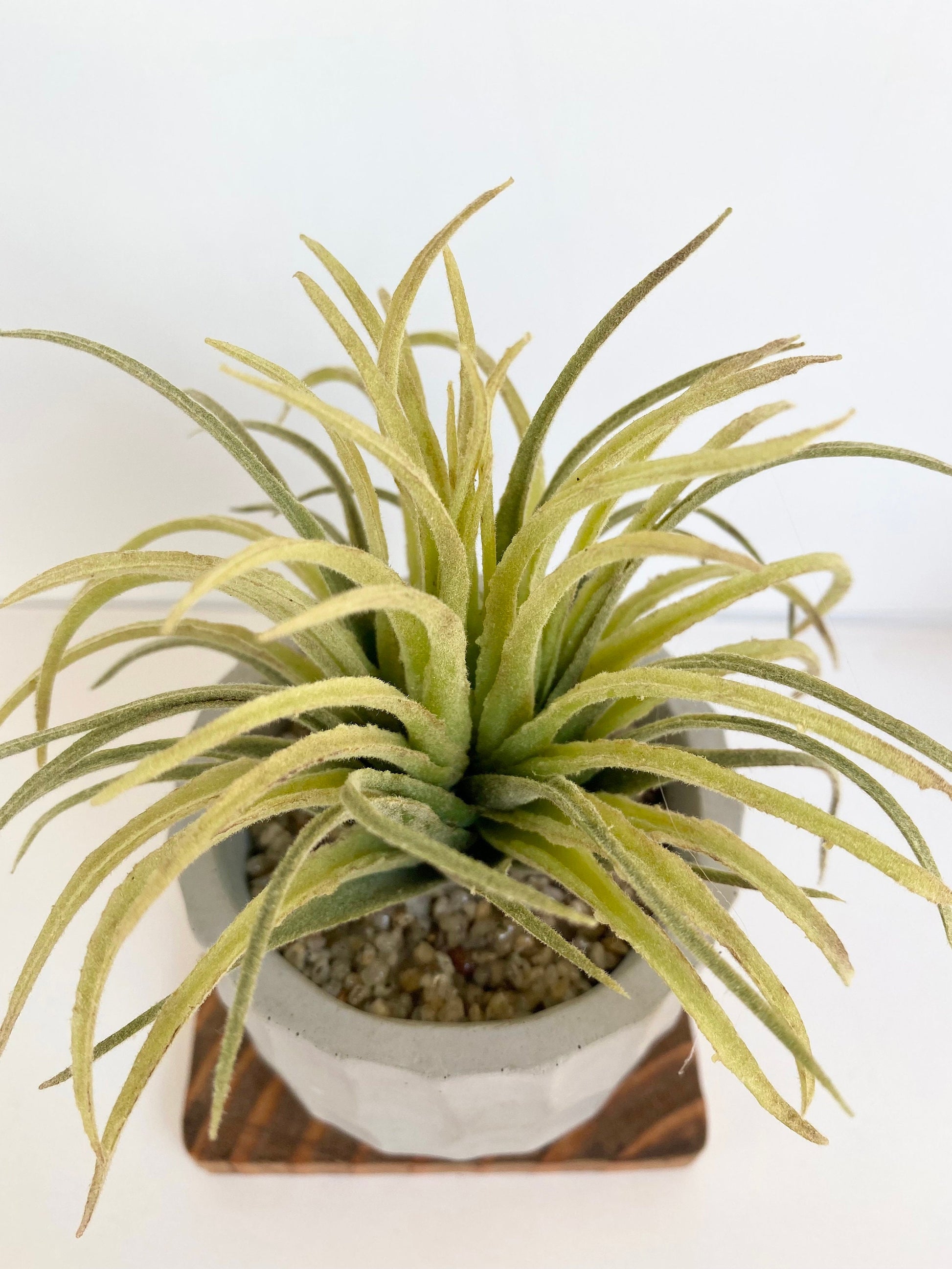 Artificial Air Plant in handmade Concrete Pot with Wood Tray