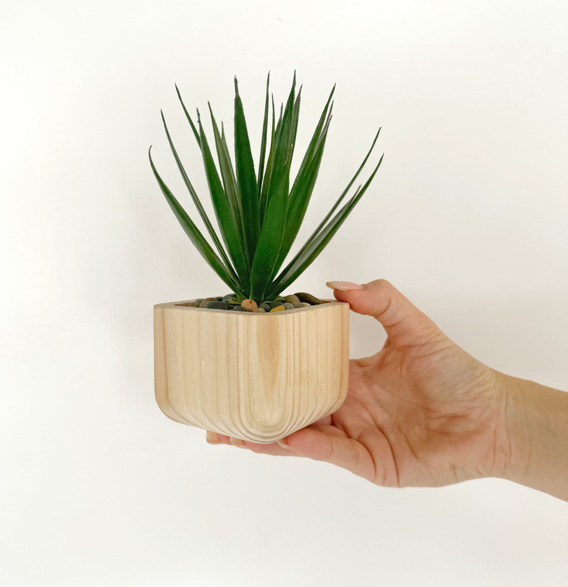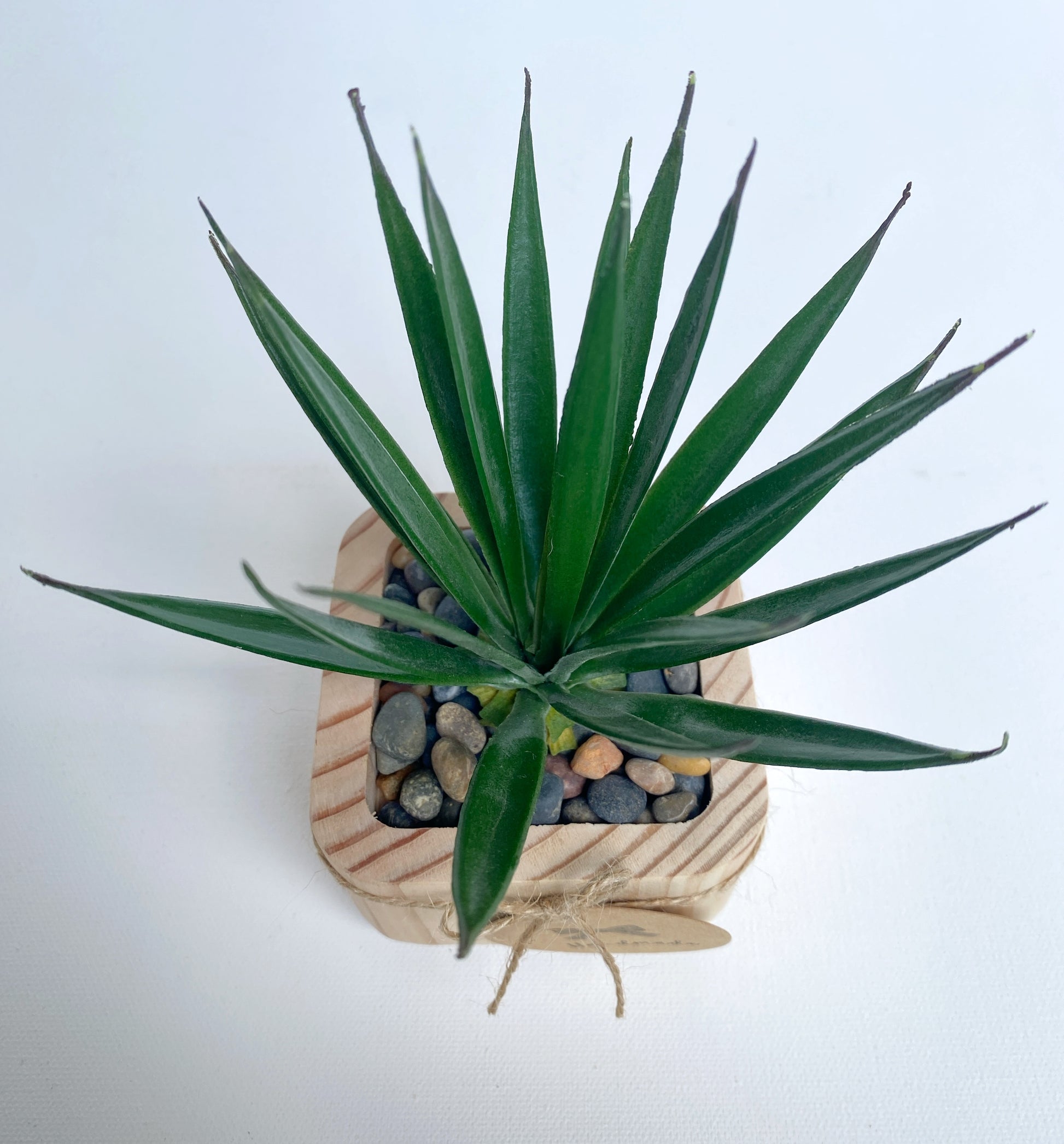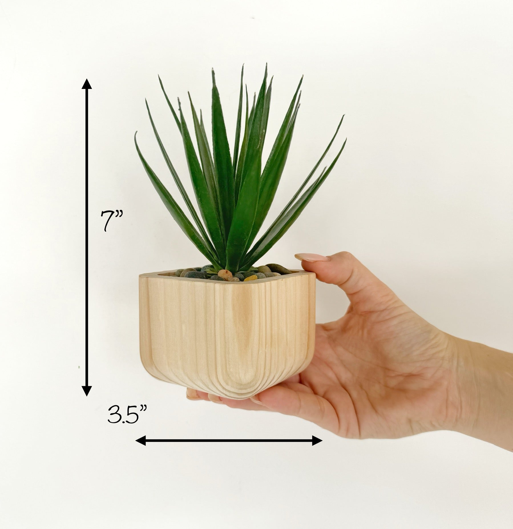 Artificial Succulent Plant in handmade Wood Pot - Air Plant or Aloe Vera Pick