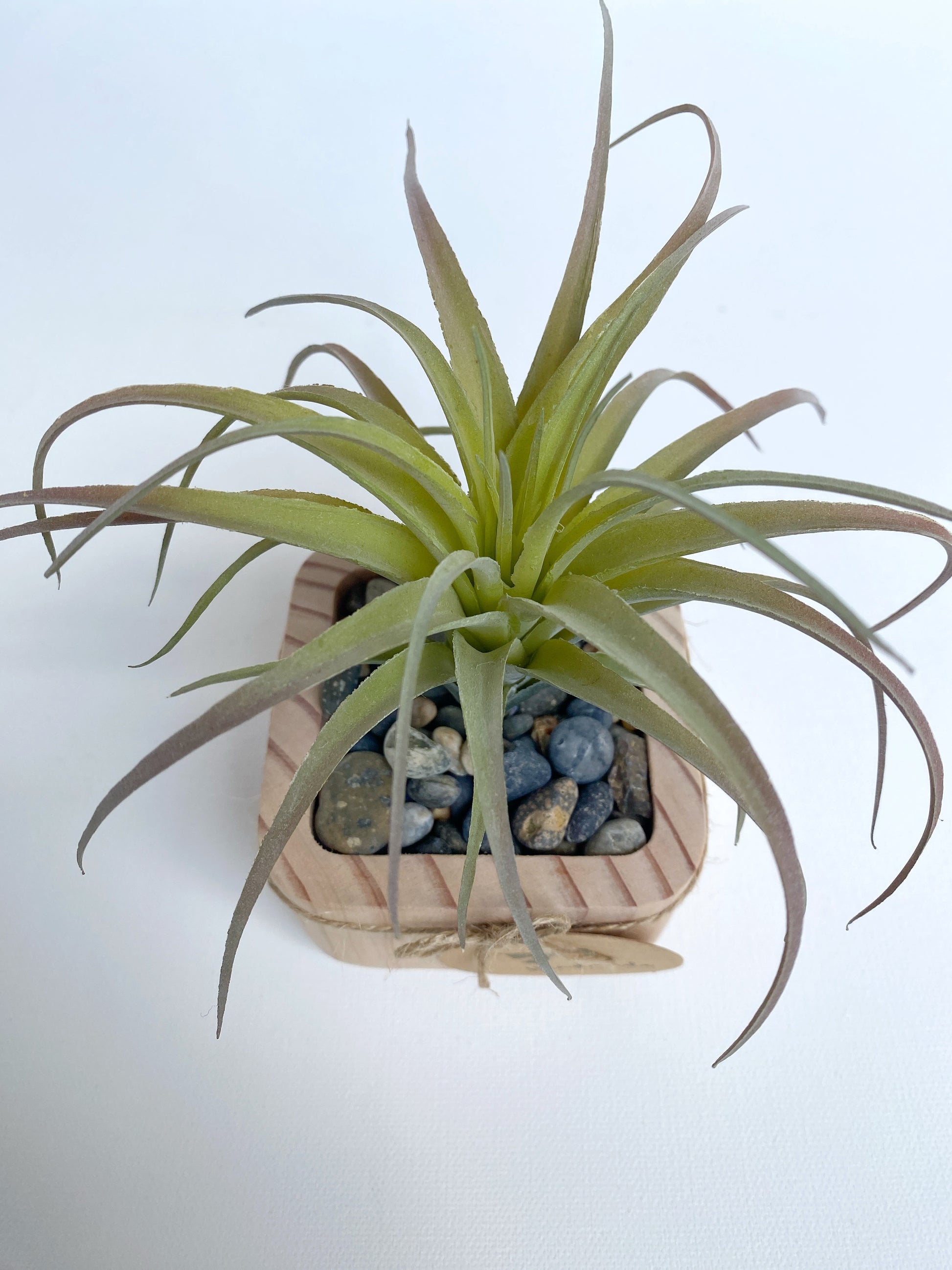 Handmade in San Diego, CA - Very realistic looking, artificial Air Plant or Aloe Vera Plant/Succulent, in handmade wood Pot!