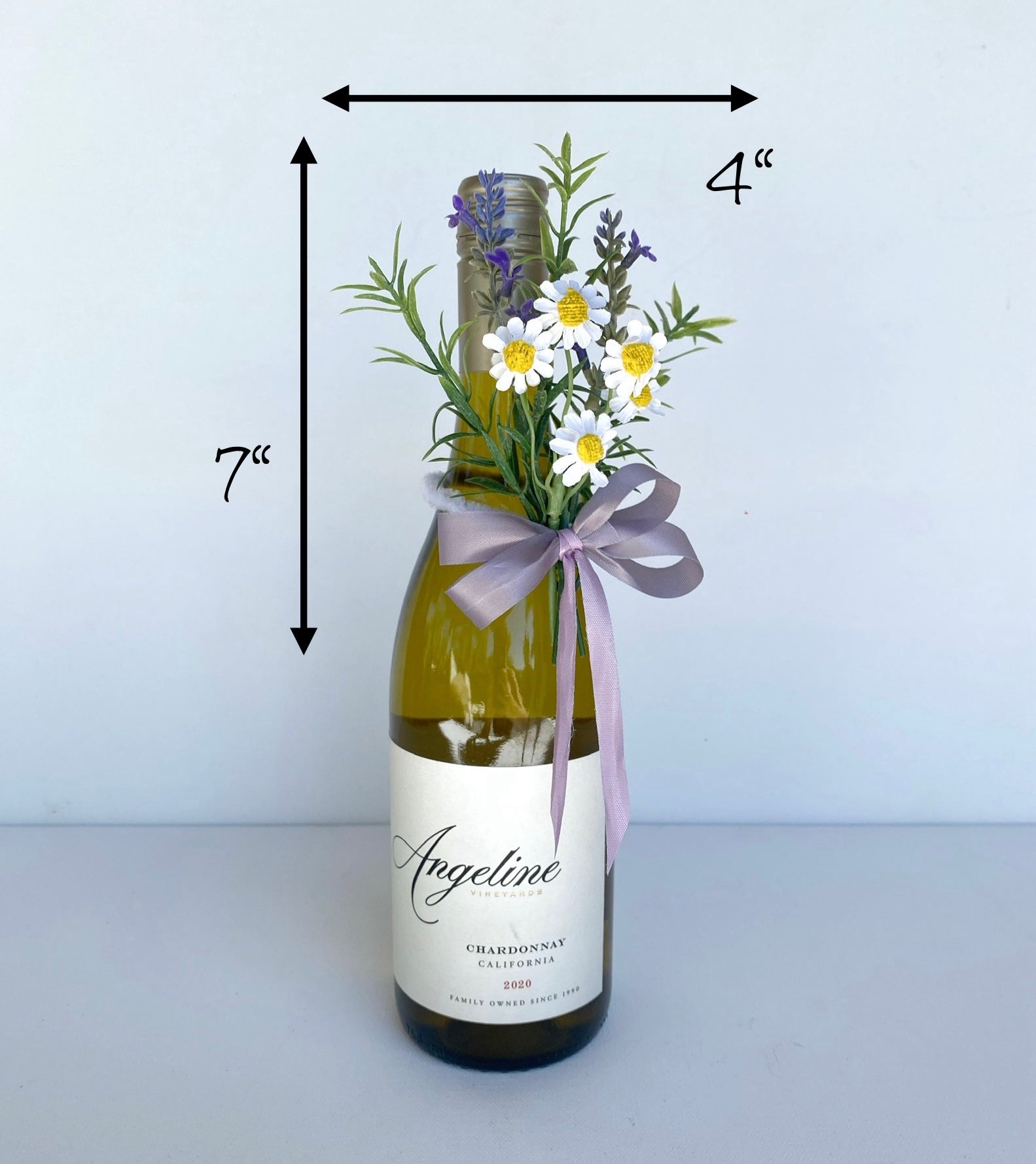 Wine Lover Gift - Faux Flower Arrangement for Wine or Champagne Bottles – Daisy and Lavender Wine Bottle Bouquet - Bottle Flowers