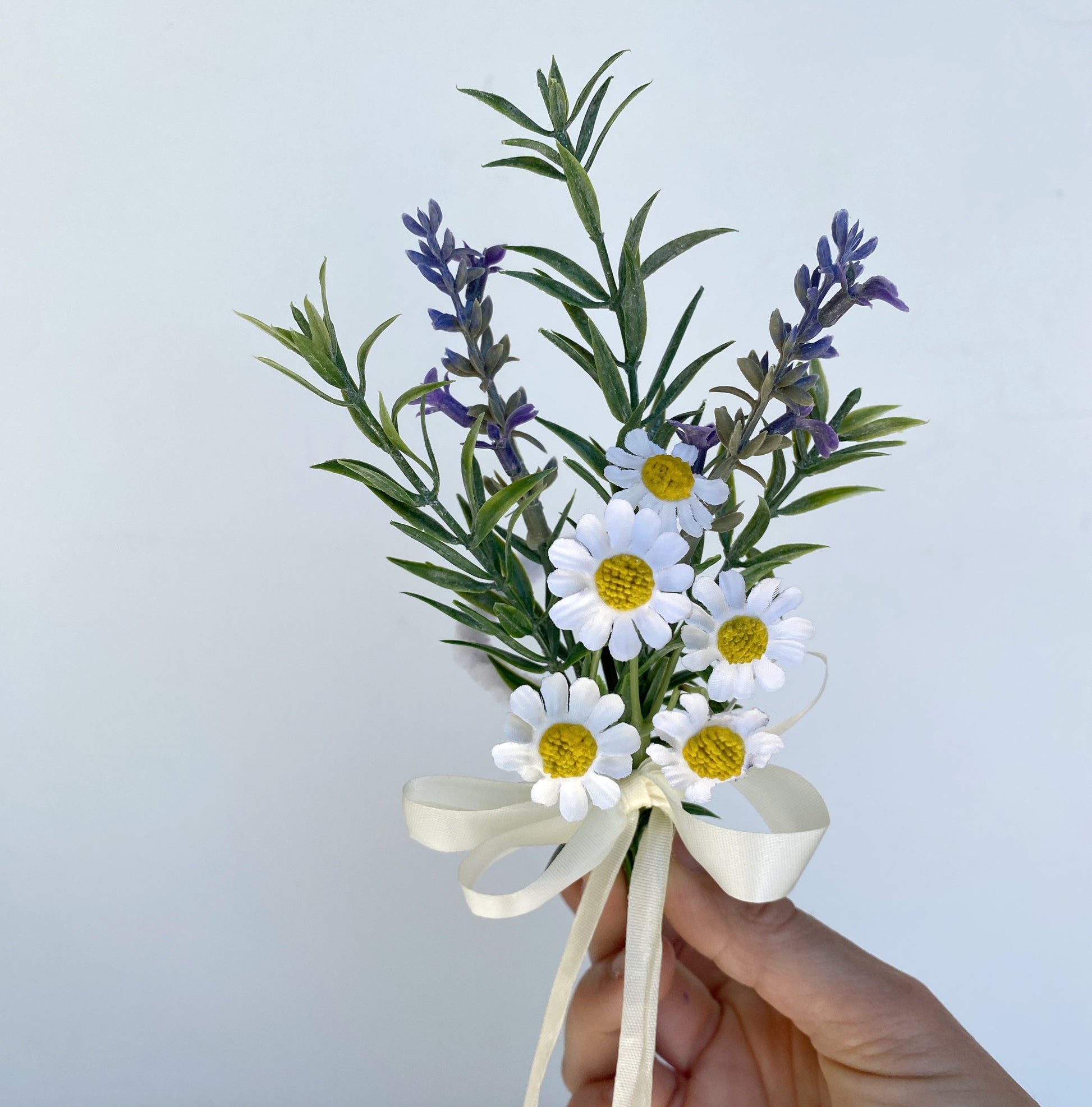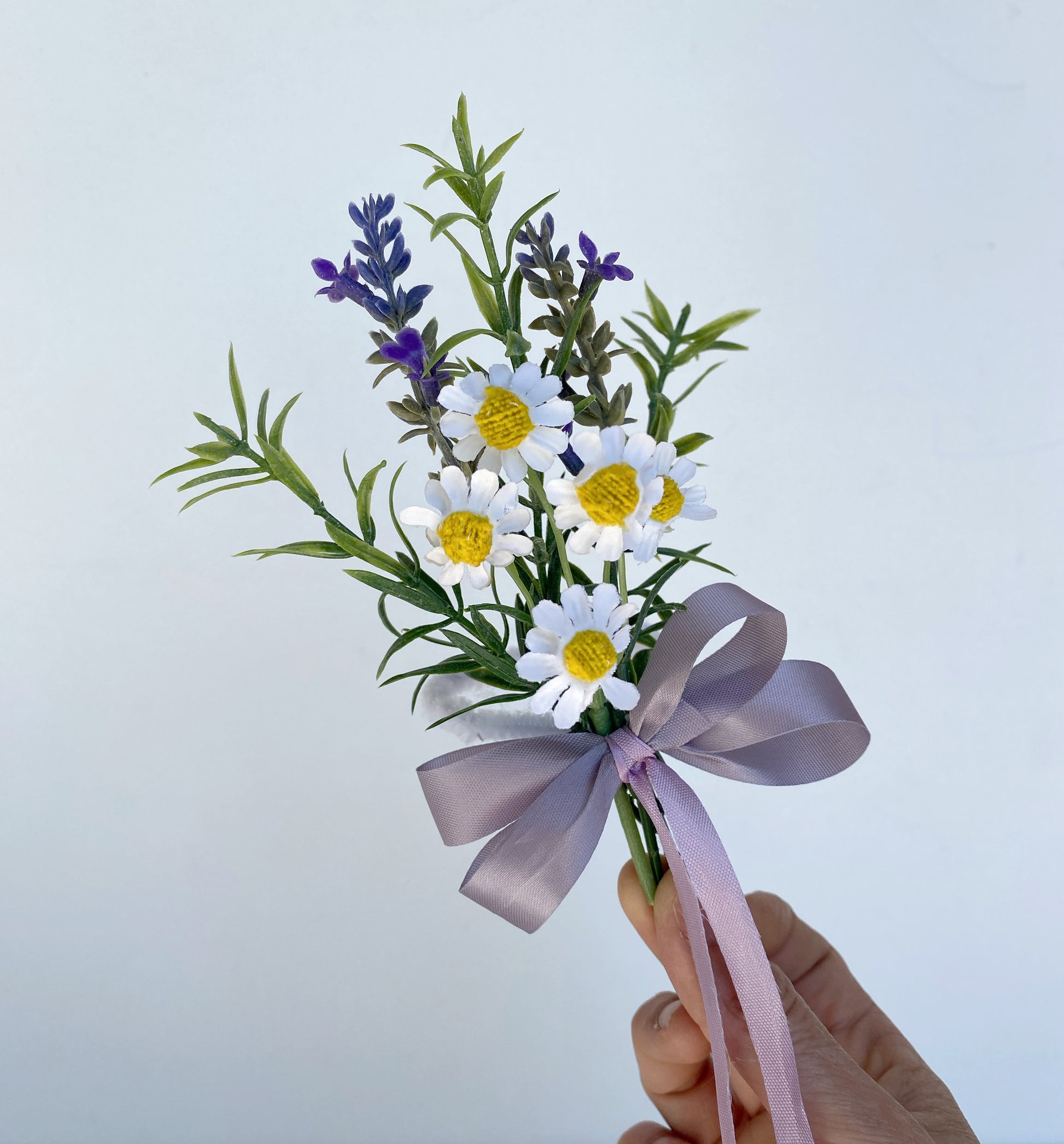 I used high quality artificial Daisy Flower and Lavender Stems for the Arrangement.